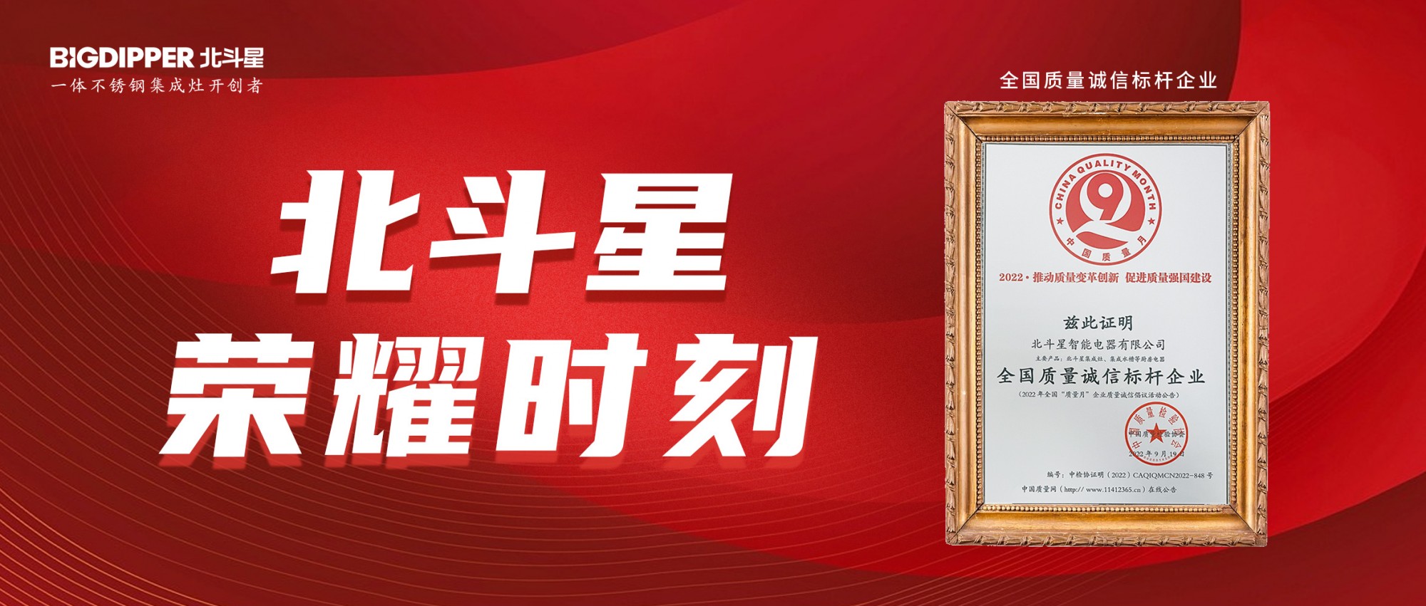 北斗星集成灶入選2022年度中國質量月“全國質量誠信標桿”企業